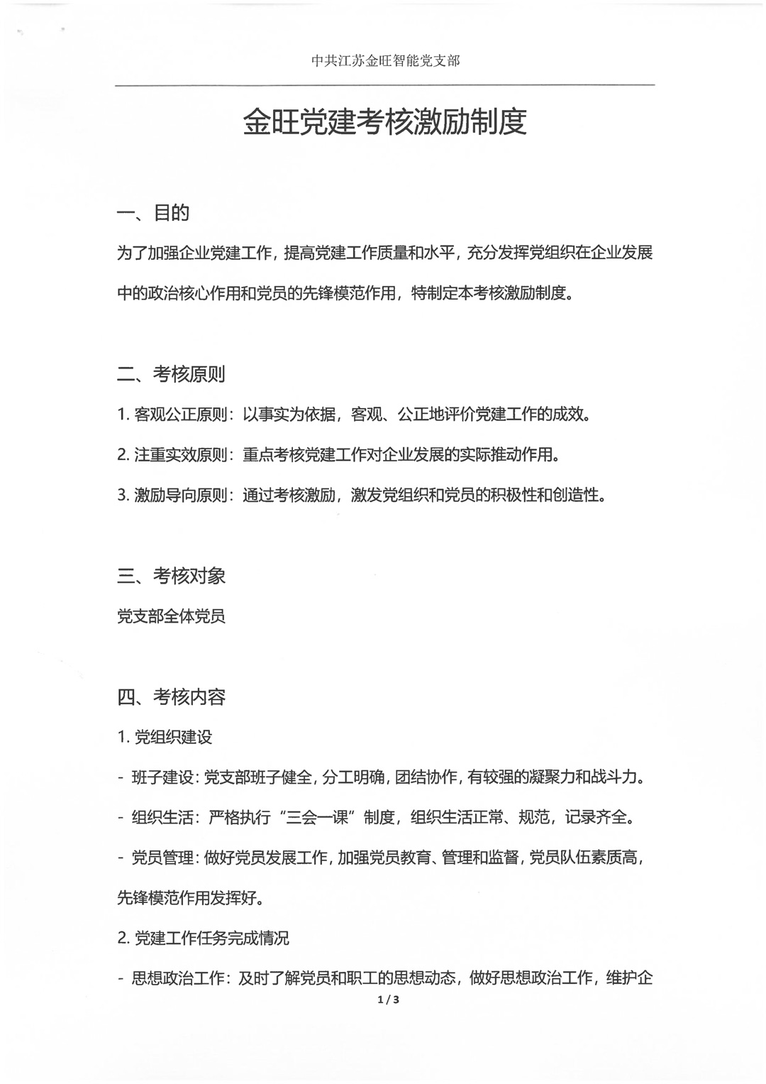 金旺黨建工作規(guī)章制度及考核激勵(lì)制度