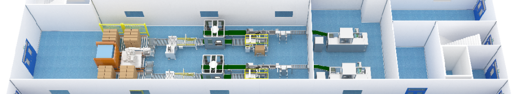 整個設(shè)計充分利用空間優(yōu)勢,提升了自動化程度,成品物料對接包裝設(shè)備更加方便快捷,同時釋放了一層包裝空間,實現(xiàn)多線同時生產(chǎn),減員增效!